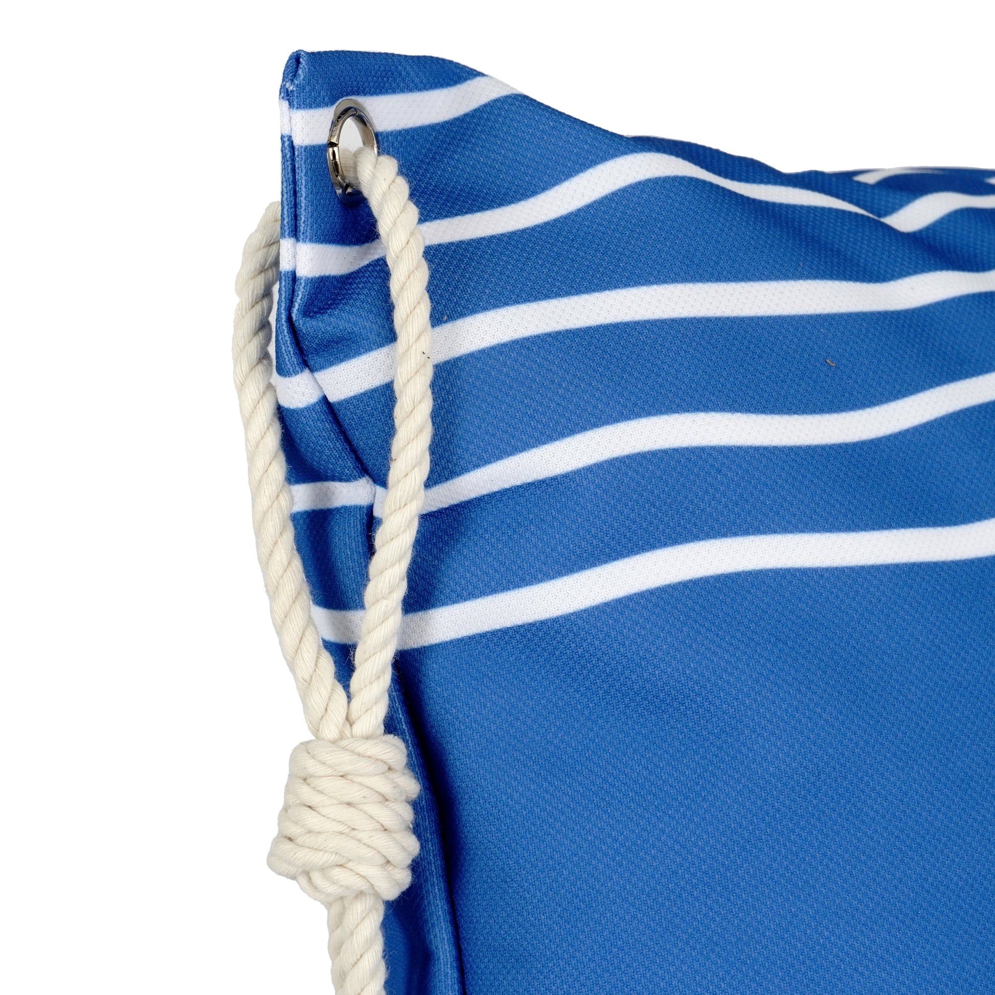 Besonderes Highlight: Die Kissenhülle ist mit einer markanten Öse und einer dicken Stoff-Kordel ausgestattet, was ihr einen maritimen und hochwertigen Look verleiht.