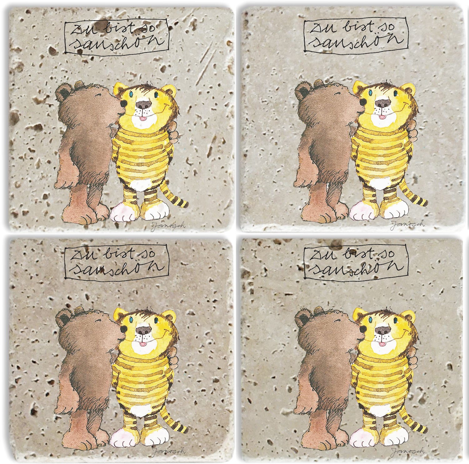 Janosch Steinuntersetzer-Set - Du bist so sauschön