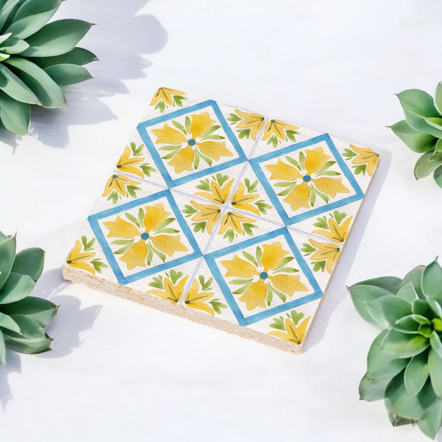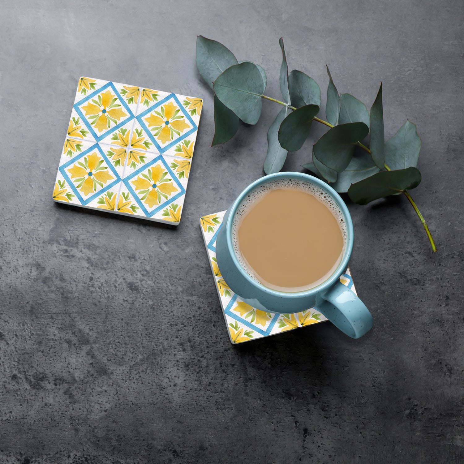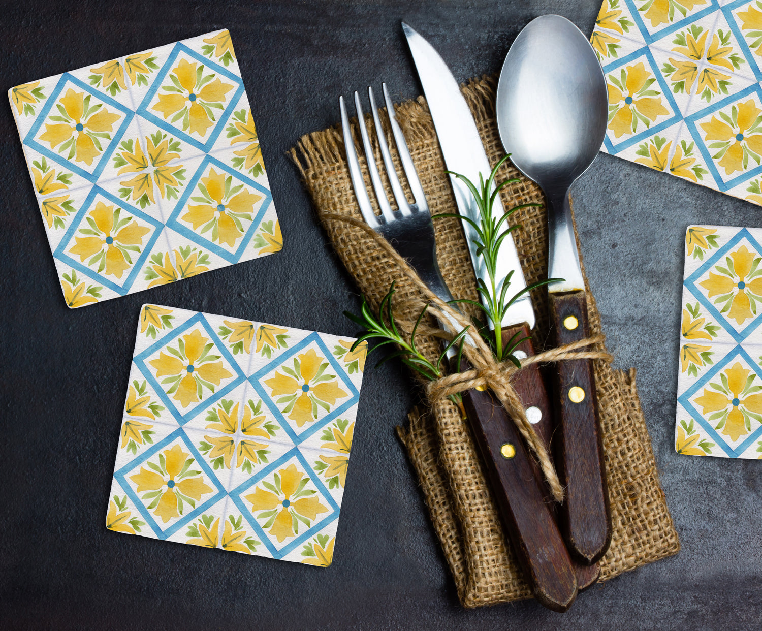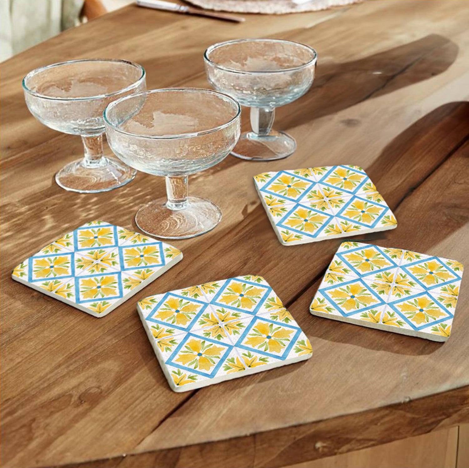 Steinuntersetzer-Set - Yellow and Blue Summer