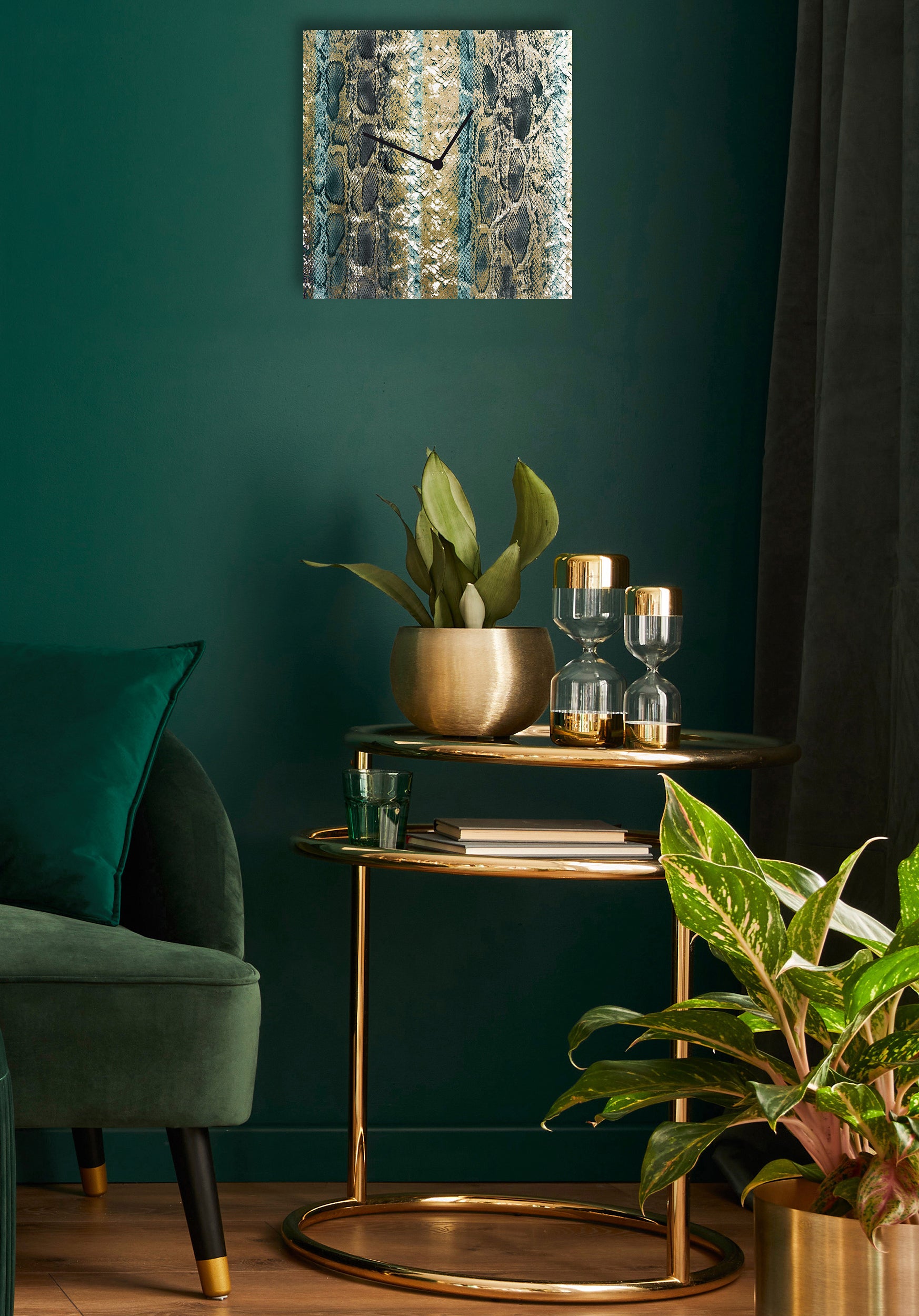Erlebe zeitlose Eleganz mit der exklusiven Queence Uhr, veredelt mit Blattgold. Diese edle Wanduhr vereint Luxus und modernes Design, gefertigt aus 3 mm starkem Acrylglas für eine hochwertige Optik und Langlebigkeit. Das präzise Uhrwerk sorgt für eine zuverlässige Zeitangabe, während das goldene Finish jedes Interieur stilvoll aufwertet. Die Uhr ist batterie betrieben (Batterien nicht im Lieferumfang enthalten) und lässt sich mühelos anbringen. Ob als Highlight in Wohnräumen, Büros oder als edles Geschenk – mit Queence setzt du ein Statement in Sachen Luxus und Design.