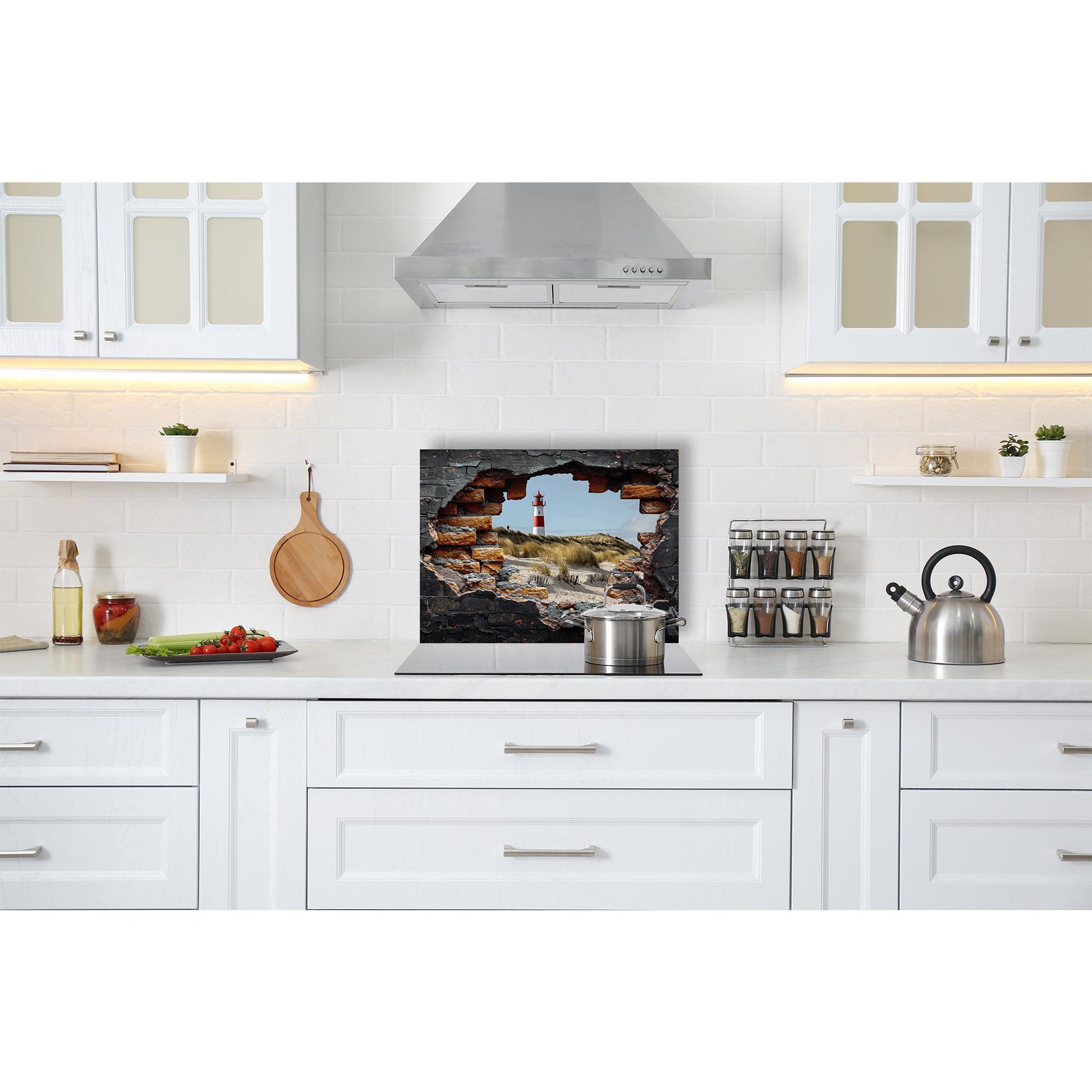 Spritzschutz - Leuchtturm am Strand