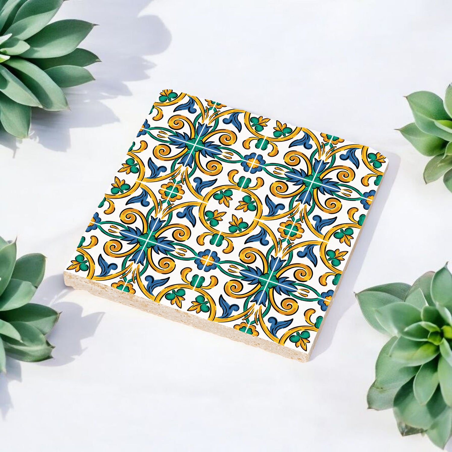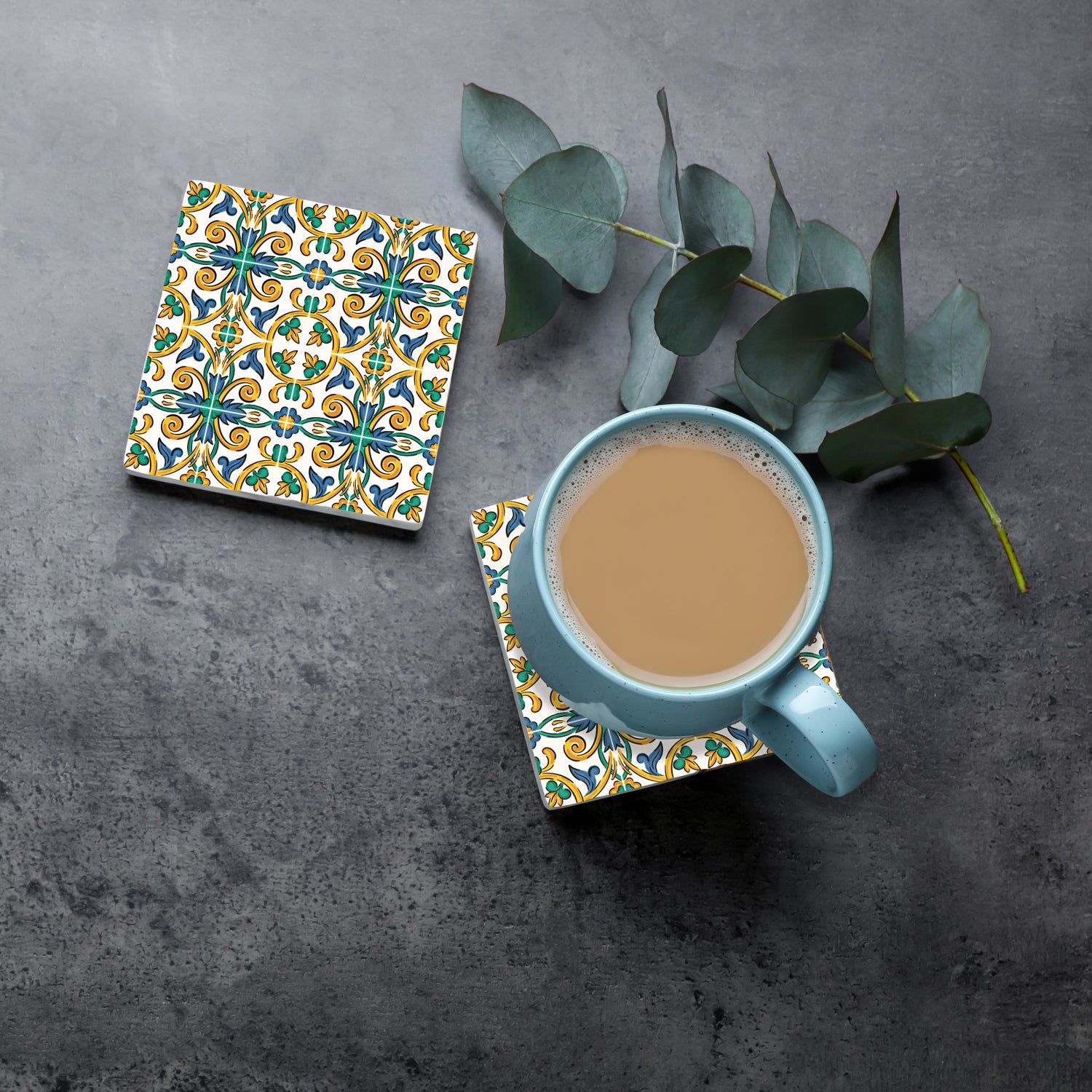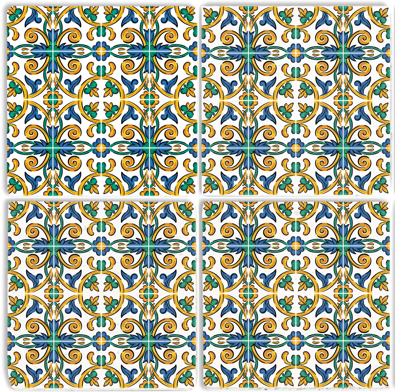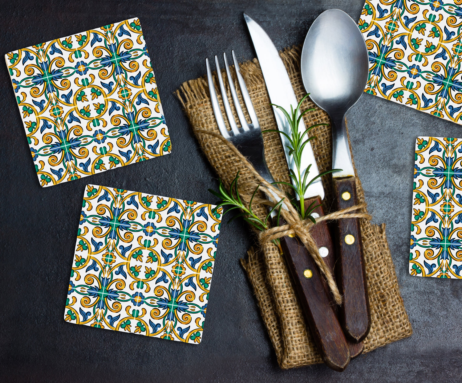 Steinuntersetzer-Set - Blaue und Grüne Ornamente